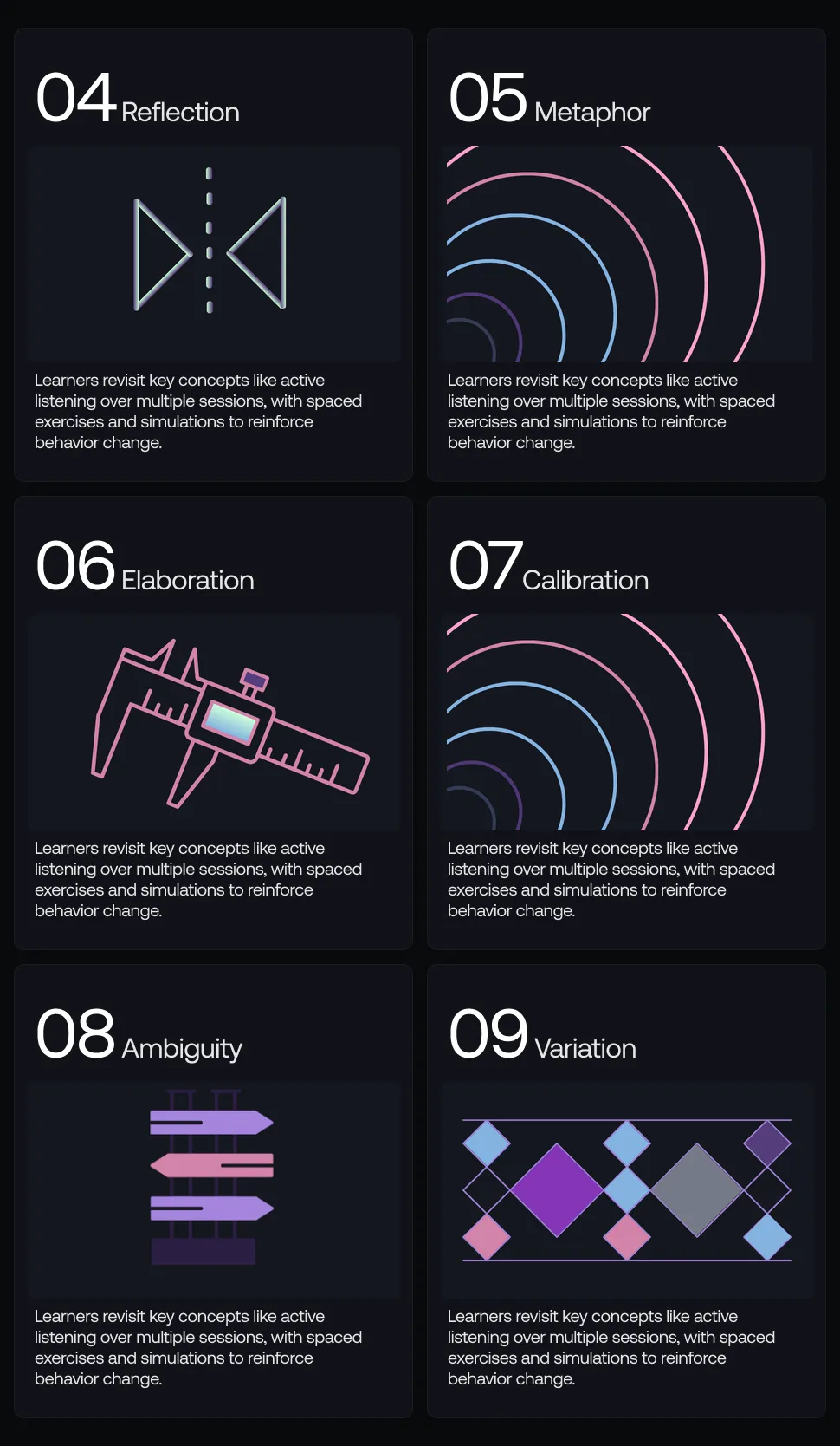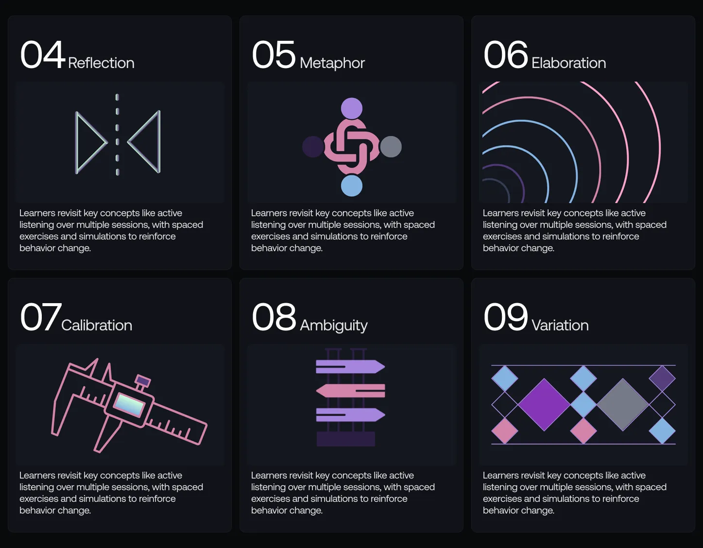 Grounded in cognitive science, our courses pack 600+ learning triggers, all built on nine proven learning science principles.